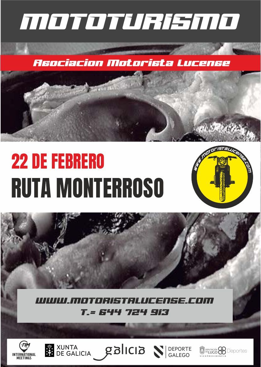 Salida a las 11:00h del Club Fluvial Saldremos en ruta por las carreteras de montaña hasta llegar al restaurante situado en Monterroso Después de comer un gran cocido regresaremos a Lugo. Paty se encarga de preparar la ruta en esta ocasión....